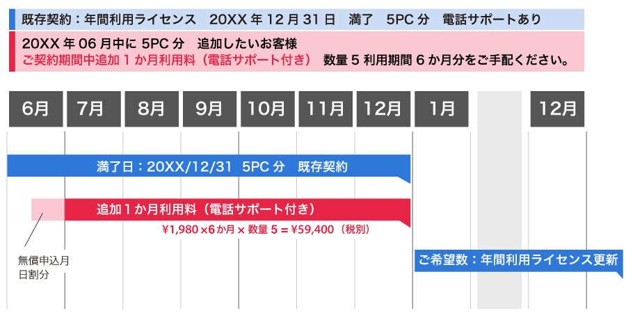 (例)ご契約期間中途中追加ライセンス利用料